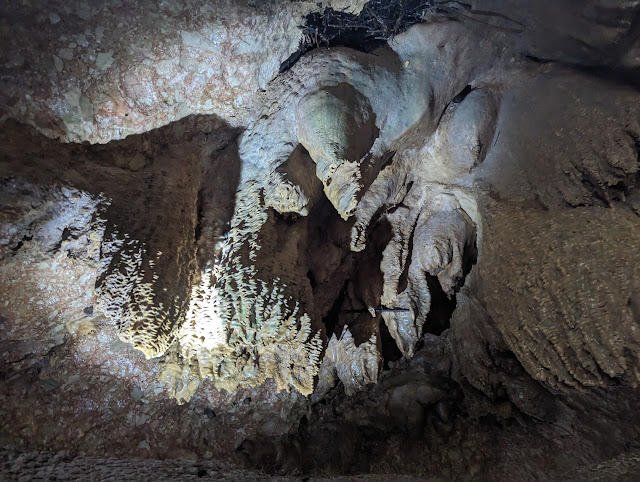 "Fab" was a lively, well informed guide who lead me through a couple of miles of caves that had occasional daylight breaks along the way. Fab thought this outline looked like a Hershey's Kiss